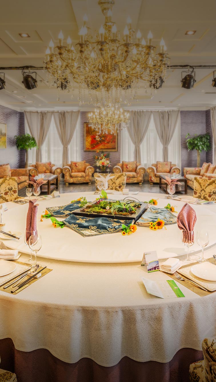 马迭尔中餐以龙菜为主,经典宴席冰雪宴、三江鱼宴,特色菜式有蒜烧鳇鱼、松茸豆花、红汁烩小牛肉等。